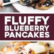 Super thick and fluffy blueberry pancakes! Melt in your mouth, golden brown, and bursting with blueberries.